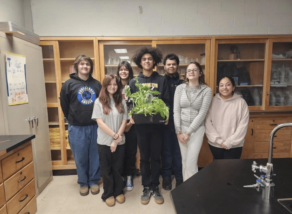 Next, the Garden Club is in the spotlight this week as a student-led group with President Vic George, Vice President Morgan Cummings, and Social Media Manager Alexus Leighliter. They are also organized by Mrs. Chrzan. Currently, they are growing vegetables that will be used in school lunches.